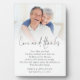 Newlyweds Love Thanks Parents Photo Wedding. Parents of the happy couple will feel very moved indeed to receive this wonderful message showing them how much they mean to you on your wedding day! Simply add your favorite photo of your parents at the top, then follows your own special message and names and wedding date. Love and thanks is in a modern set script and the rest of the text is easily personalised so you can tell your moms and dads how special they are to you in your own sweet way. You can also change the text to different colors if you wish by clicking the Further Customisation option. A gift your moms and dads will treasure!
