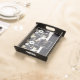 The serving tray was a great gift for a couple married 55 years. We like the personal names on the tray, and the well constructed frame. Very happy with the craftsmanship and the packaging. The printing was great every thing was great.