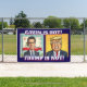 Funny Democratic Political Protest banner that says Newsom is Hot, Trump is Not for your protest or rally with funny caricatures of Donald Trump and Gavin Newsom.