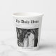 Cool newspaper article wedding paper cups. Personalize it with your event details and a photograph of the bride and groom.