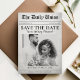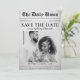 Cool newspaper article wedding save the date. Personalize it with your event details and a photograph of the bride and groom.