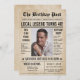 Celebrate a milestone birthday in style with this vintage newspaper birthday invitation — the perfect choice for a 40th birthday party for men! Designed with a classic newspaper layout featuring a bold headline, central photo frame, and humorous “breaking news” style filler text, this invitation brings personality and charm to any milestone celebration.