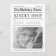 Newspaper Black White Unique Photo Wedding RSVP Enclosure Card