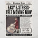 Make headlines with this vintage newspaper-style flyer designed for packing and moving services. Featuring a classic layout with bold headlines and customizable sections, this flyer is perfect for promoting your expert packing, loading, and moving offerings. Ideal for professional movers, relocation companies, and local moving specialists aiming to stand out with timeless style.
