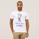 Men's white, fitted tshirt with logo and text on the front