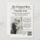Yes, you can print on the back of your invitation for free! Most designs already have a corresponding design on the back that can be personalized using the Design Tool and going to Layers. This is a great way to communicate more information or further personalize your Newspaper Unique Photo Wedding Thank You Invitation. The option is really up to you.