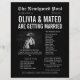 Make your big day unforgettable with this unique newspaper wedding program. Featuring a modern and elegant black and white design, this program offers a creative twist on traditional wedding stationery. Perfect for couples looking to share a fun and personal touch, it includes everything from a detailed timeline of the ceremony to fun facts about the couple. This newspaper wedding program will be a memorable keepsake for your guests, showcasing your love story in a way that’s as stylish as it is meaningful.