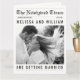 Make your wedding program a memorable keepsake with our newspaper style program. Our program features four pages of personalized content to make your big day even more special. A wedding timeline to keep guests informed of the day's events. Your menu, ensuring guests are aware of the delicious food they'll be enjoying. "Our Story", a personalized section where you can share your unique love story with your guests. The fourth page includes a fun wedding word search to keep guests entertained. Our newspaper style program is a unique choice that adds a touch of vintage charm to your wedding. With its classic design, it's perfect for any wedding theme. Plus, it's easy to customize with your own wording and photos. Order now and impress your guests with this beautiful and functional addition to your wedding day.