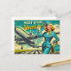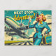 Here’s the vintage travel postcard featuring a glamorous 1960s flight attendant with a stylish blue uniform, matching hat, and white gloves. ✈️🌍👩✈️ She holds a carry-on bag and gestures toward a sleek airplane. The background features a clear blue sky with fluffy clouds and a runway. The bold 1960s-style typography reads "Next stop: Adventure!", giving it a nostalgic, aviation-inspired vibe.