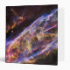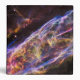 Stunning detail of a small section of the Veil Nebula. This section of the outer shell of the famous supernova remnant is in a region known as NGC 6960, the Witch's Broom Nebula. The debris is one of the best-known supernova remnants, deriving its name from its delicate, draped filamentary structures. The entire nebula is 110 light-years across, covering six full moons on the sky as seen from Earth, and resides about 2,100 light-years away in the constellation Cygnus. This view is a mosaic of six Hubble pictures of a small area roughly two light-years across, covering only a tiny fraction of the nebula's vast structure. This close-up look unveils wisps of gas, which are all that remain of what was once a star 20 times more massive than our sun. The fast-moving blast wave from the ancient explosion is plowing into a wall of cool, denser interstellar gas, emitting light.
