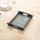 This is a well made, sturdy wooden tray with a flawless black finish and lovely map on the tray surface. It is both vintage & modern at the same time. Looks exactly like the photo; does not disappoint. So nice to find something of quality individually made and not the mass-produced 'shabby chic' merchandise seen in stores. I am so pleased to be able to give this to my college-age niece for her birthday. This can be used as a tray to hold jewelry or toiletries, or hung on the wall as art. The map surface is sealed (it is slightly shiny) so would be moisture resistant. It is well worth the asking price but I was able to apply a sale code as well. Very happy with my purchase. Map is crisp & clear and sealed with a water-resitant finish.