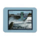 A digital painting of the international bridge and observation tower at Niagara Falls, New York. With the horseshoe waterfall flowing quickly down into the river below, it sends water up into the air. A black-crownded night heron is in the bottom corner next to the white lettering, "Niagara Falls". At the top corners of the painting in white lettering is, "Canada" and "New York", showing which side of the gorge is who's. The painting has a dark blue border. Image Copyright ©2023 Kimberly J Tilley.