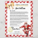 Elegant Vintage Retro Whimsical Modern Theme. Santa's personal custom letter for his workshop straight from the North Pole stationary for parents, mothers, grandparents and family to gift a kid. Traditional classic red white and gold colors with a red gingham classic festive pattern border. Features a watercolor illustration of Father Christmas, a gold gift bow and a letter stamp.