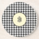 Classic Houndstooth pattern design with vintage yellow frame and modern black monogram. This stylish coaster is made of sandstone and measures 4.25" diameter .25" thick. Easily change the monogram initials using the Template provided. Coaster has a cork backing made to keep your tables scratch and moisture free. See "About This Product" at side for additional information.