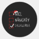 Nice Naughty Cheerleader List Christmas Santa Clau Classic Round Sticker