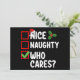 Here at Zazzle we provide a number of mailing accessories that can match your Nice Naughty Who Cares Christmas List Family Invitation for almost every event such as birthdays, weddings, and parties. You can choose from popular mailing accessories to go with your invitations including save the dates to send out ahead of your invitations, embossers for unique prints, return address labels, and more. With our large array of products and our design tool, it’s easy to create cohesive designs that will set the tone for your special occasion.