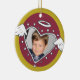 This ceramic holiday ornament features a whimsical illustration on the front, showcasing a heart adorned with angel wings and a halo, creating a heavenly and joyful vibe. What makes it truly special is the customizable space at the center, allowing you to showcase a cherished photo of a loved one, whether it be a family member, friend, or beloved pet.
