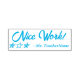 This positive rubber stamp design features the encouraging feedback message "Nice Work!" and a customized educator name. It also features decorative star shapes. It could be used by a school teacher, educator, or tutor when grading student work, to acknowledge that a student has done an exceptional job.