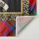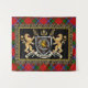 This Nicolson wall tapestry is a stunning piece to have in your home. Featuring framed lion supporters, on either side of the clan badge, crossed basket hilt claymore swords and a golden thistle. Tapestries were hung on castle walls to keep the warm in from the cold stone behind them. Comes in all sizes.