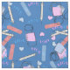 NICU nurse pattern in pink and blue on a blue background. Syringes, hearts, IV bags and bandaids.