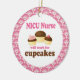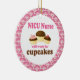 NICU Nurse ornament has funny will work for cupcakes quote and a trio of cute chocolate cupcakes occupation design. It makes a great Christmas gift idea or retirement gift for a woman or female NICU Nurse.