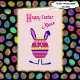 A cute Easter bunny for your niece in the shape of an Easter egg. The egg is decorated with spots, stripes and zigzags in pink, blue and yellow, and the background is also pink. The message inside can be customised and reads "A happy Easter bunny is here to wish a special niece a very Happy Easter!"