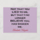 A simple but profound quote for living, by Friedrich Nietzsche: "Not that you LIED to me, but that I no longer BELIEVE you, has shaken me."