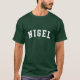 Nigel! Is your name Nigel? Or do you have a husband, boyfriend, male family member or male friend named Nigel? If so, this "Banner" shirt is exactly the gift that you're looking for! The design features "Nigel" in arched white lettering across the chest in the classic College font.