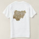 An editable title and slogan accompanies the vertical green, white and green bands of the Nigerian flag on the front of this t-shirt. The back displays a detailed map of Nigeria.
