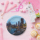 Paper plates featuring a beautiful and peaceful night at Chicago's famous Navy Pier with a view of the cityscape.