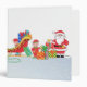 Send holiday greetings with this contemporary image of Santa, his sleigh and reindeer.
