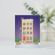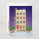 Send your holiday greetings with this lively contemporary image of Santa's home at the North Pole. He prepares for his Christmas journey assisted by reindeer, elves and a cat.