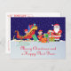 Send holiday greetings with this contemporary image of Santa, his sleigh and reindeer. Add your own custom text.