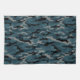 These camo kitchen towel feature a camouflage pattern in blue and black and gray.