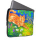 Laptop Sleeve featuring Louis Wain’s animal painting Cat Stalking (1860-1939). An orange striped cat walks a green field at night. White, purple, and red flowers are in the foreground. A wonderful gift for cat lovers and English art.