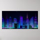 Night city panorama with neon glow on dark backgro poster