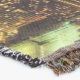 A quality printed throw has its advantages. This is a much finer weave throw than its loopier cousins, and though lighter, it is worth the investment for custom room accessorizing. The back is much prettier than the typical brown, and the fringe on the long sides very vivid, the selvage nicely done. Before photographing, I washed the throw in cold water, delicate, with a thicker woven throw the same size. On tumble dry low, this throw was dry in half the time as the other. This is a very practical quality if you use throws for furniture covers or to wrap up in frequently. The sleekness of the fabric makes it a great layer for accenting or protecting without the feeling of sitting on too much stuff. Perfect for napping or when you feel a light chill coming on. The color printing is beautiful and on this fabric, matched the design and color of my Photoshop image. This is an advantage for blending room fabrics and colors. The fringe on the short sides prints the colors from the design image and therefore varies from the side fringe. I streaked a white fractal line through the plaid pattern to give the illusion of weaving. This printed as crisp as an illusory thread, and put some white in the short side fringe, showing another advantage of print vs loomed- for artistic purposes, line lines, detail, and color integrity can be planned and preserved. My loomed throws have color limitations and more of a needlepoint texture. Print throws reproduce an exact image. The throw felt a little stiff straight out of the package, but this went away in the first delicate wash. Of course I searched the wash water for ink or bleeding and there was none.