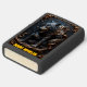 This dark, illustrated lighter features a powerful, crouched wolf with glowing orange eyes and bared fangs. The wolf is engulfed in dark, swirling fire or smoke-like tendrils and is framed by highly detailed, dimensional gold scrollwork. The background is a midnight blue with faint golden particles. The phrase "NIGHT HOWLER" is set in stylized yellow block letters at the bottom. The design is set on a matte black lighter casing. The design may look real due to the high detail and three-dimensional texture in the artwork.