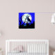 This poster features a night time theme with an owl perching on a branch with silhouettes of trees and a big moon in the background.