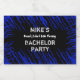 Funny bachelor party mini-liquor bottle labels. Black with blue streaks, these little labels have two text templates. Include the Groom’s name and a line to describe the party - such as “decent, calm, and bride pleasing” or “wild and crazy” or “don’t tell the bride” - bachelor party. Text is light gray and white in distressed fonts.