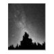 This black and white photo features a night sky over the forest.