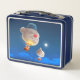 This is a standard metal lunchbox that appears to work just fine. We designed this box ourselves with an uploaded photo and custom text on the front and back. It looks absolutely beautiful except the front of the lunchbox is not centered like it shows in the photo. The print borders don't align with the inset flat part of the box where the preview photo online showed it perfectly centered in there. The back looks nice and centered though.