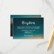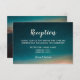 Elegant wedding reception template card. Background is a beautiful photograph of a dark turquoise blue night sky with a galaxy of stars on the front and a sunrise over mountains on the back. All text is fully customizable, in a stylish combination of fonts.