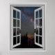 Beautiful Milky Way night sky view, fake window scene, for a windowless office or room. Very realistic optical illusion poster that would look great on an office or study wall.