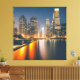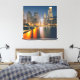 Night Skyline with Full Moon: Digital Painting on Canvas Print