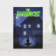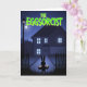 This design shows a night scene in deep blues and purples, where a tall rabbit-like figure with long ears stands at the start of a dim path, holding a basket of brightly colored, egg-shaped treats 🐰. The figure’s posture feels cautious yet caring, as if arriving with a friendly surprise for someone waiting inside. Ahead, a looming two-story house rises in shadow, but its grid-like windows glow warmly, hinting at company and a welcome. A full moon and scattered stars hang overhead, adding silver highlights to the roofline and treetops 🌷. On the left, an old streetlamp throws a cone of light across tall grass and a rough wooden fence, guiding the eye toward the doorway. Across the upper area, jagged title text in sharp acid-green sits against the dark sky, standing out like a warning sign. Dark pine trees frame the background, and the path fades into the shadows near the lit windows.