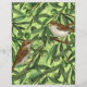Hand-painted watercolor pattern with 2 nightingales perching on olive branches