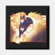 This is the original version card art for Nightmare from the Alpha Edition of Magic: The Gathering. A flaming horse jumps out of sooty clouds with mane, tail and hooves on fire.