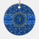 Nighttime and Snowflakes Monogrammed Ceramic Ornament