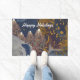 Elegant Lit Christmas Tree Blue Winter Scene Rug